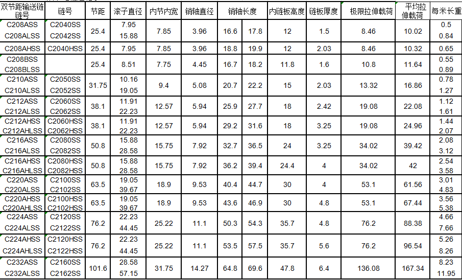浦友体验报告区(深圳): 長節距滾子鏈條規格